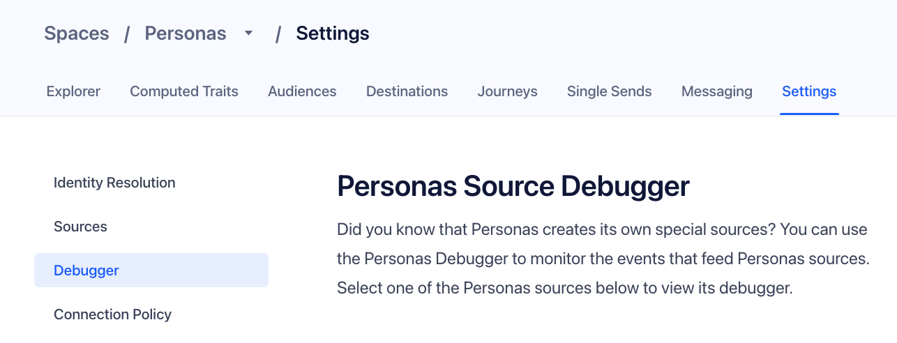 Because Personas generates a unique Source for every Destination connected to a Space, the Debugger gives you insight into how Personas sends events before they reach their Destination.